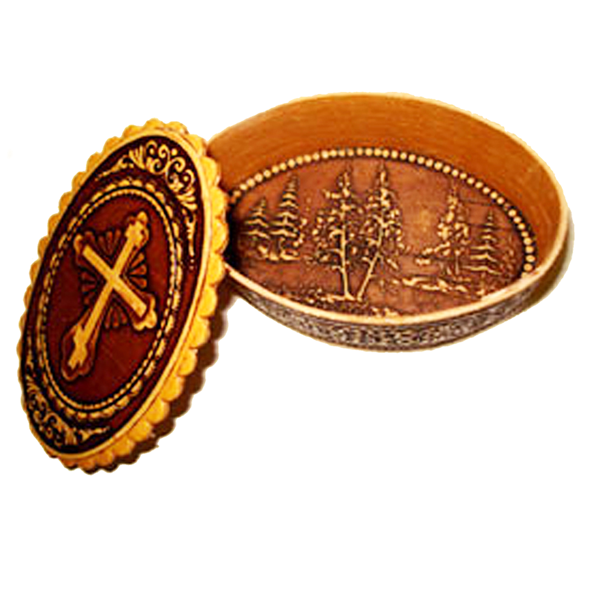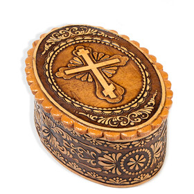 BIR-42 Oval Birch Box with Cross For Rosary and Payer Beads - Keepsake Holder 3"