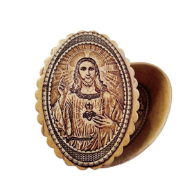 BIR-65 Sacred Heart of Jesus Russian Oval Birch Wooden 2 3/4 Inch, For Rosary, Prayer Beads