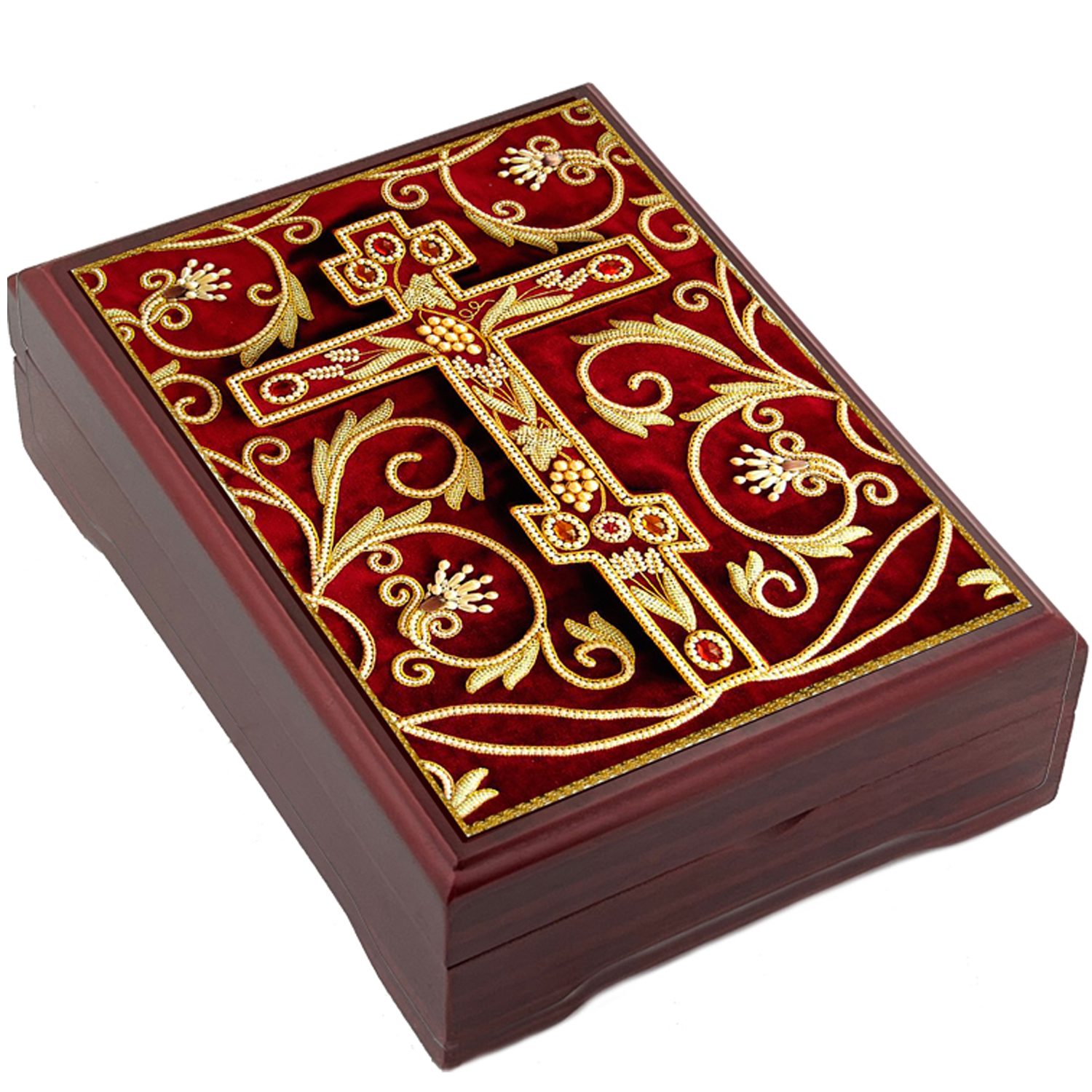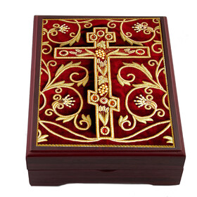 Box lined with red velvet - high quality - for jewelry, rosary, prayer beads