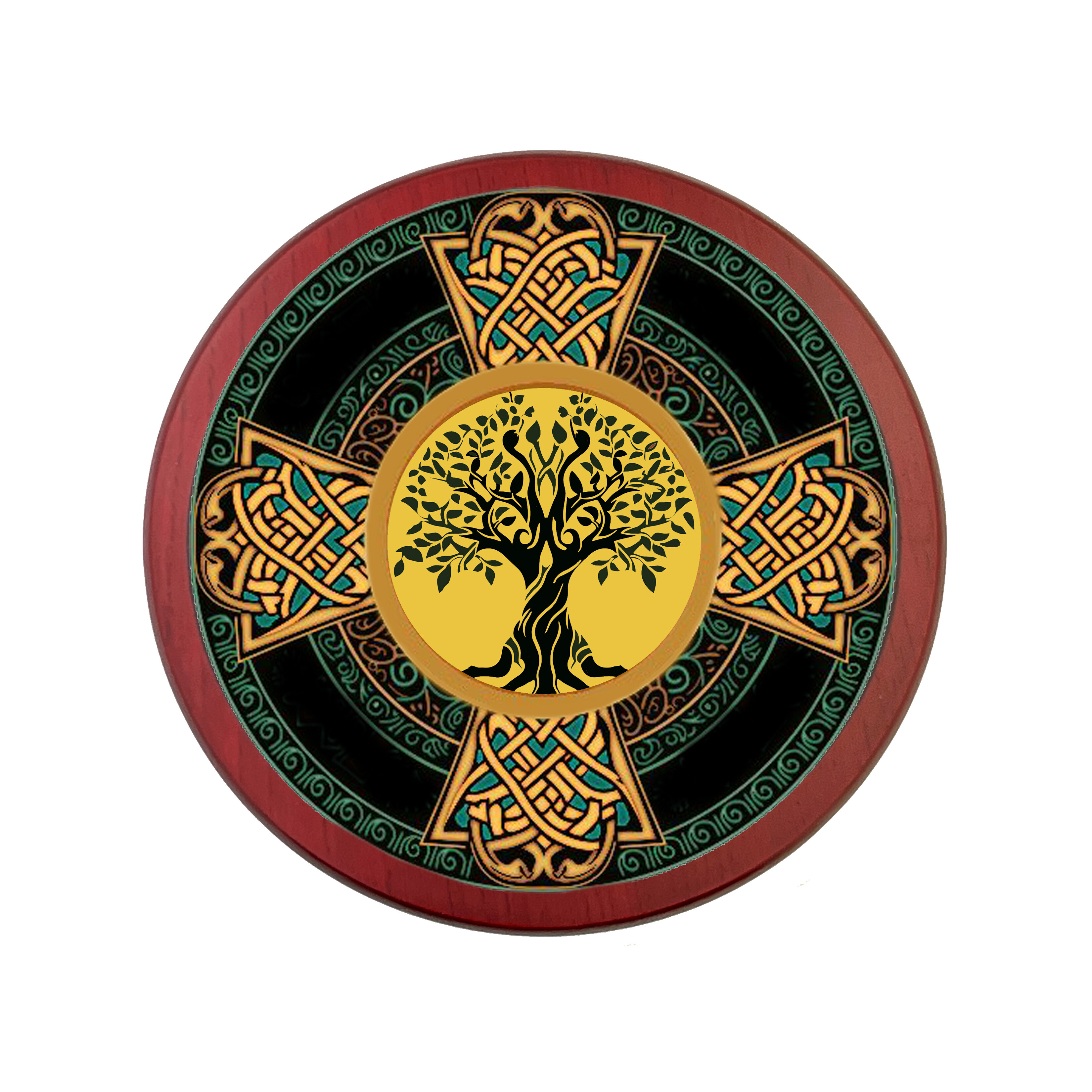Box-30 Celtic Cross Tree of Life Wooden Icon Box, Keepsake Box, Lined With Velvet High Quality 5"x5"