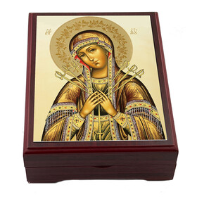 BOX-33 Seven Swords Seven Sorrows - Wooden Icon Box - Keepsake Box For Prayer Beads, Rosary, Jewelry - Lined With Velvet - High Quality - Religious Gift Idea 5 1/16"