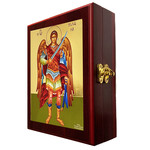 HB-X4935 Archangel Michael Icon Gilded Wall Hanging Sacred Framed Icon Box - For Rosary, Prayer Ropes, Beads, Jewelry Prayer Cards Anything Sacred - Byzantine Greek Icon 7 1/2 Inch