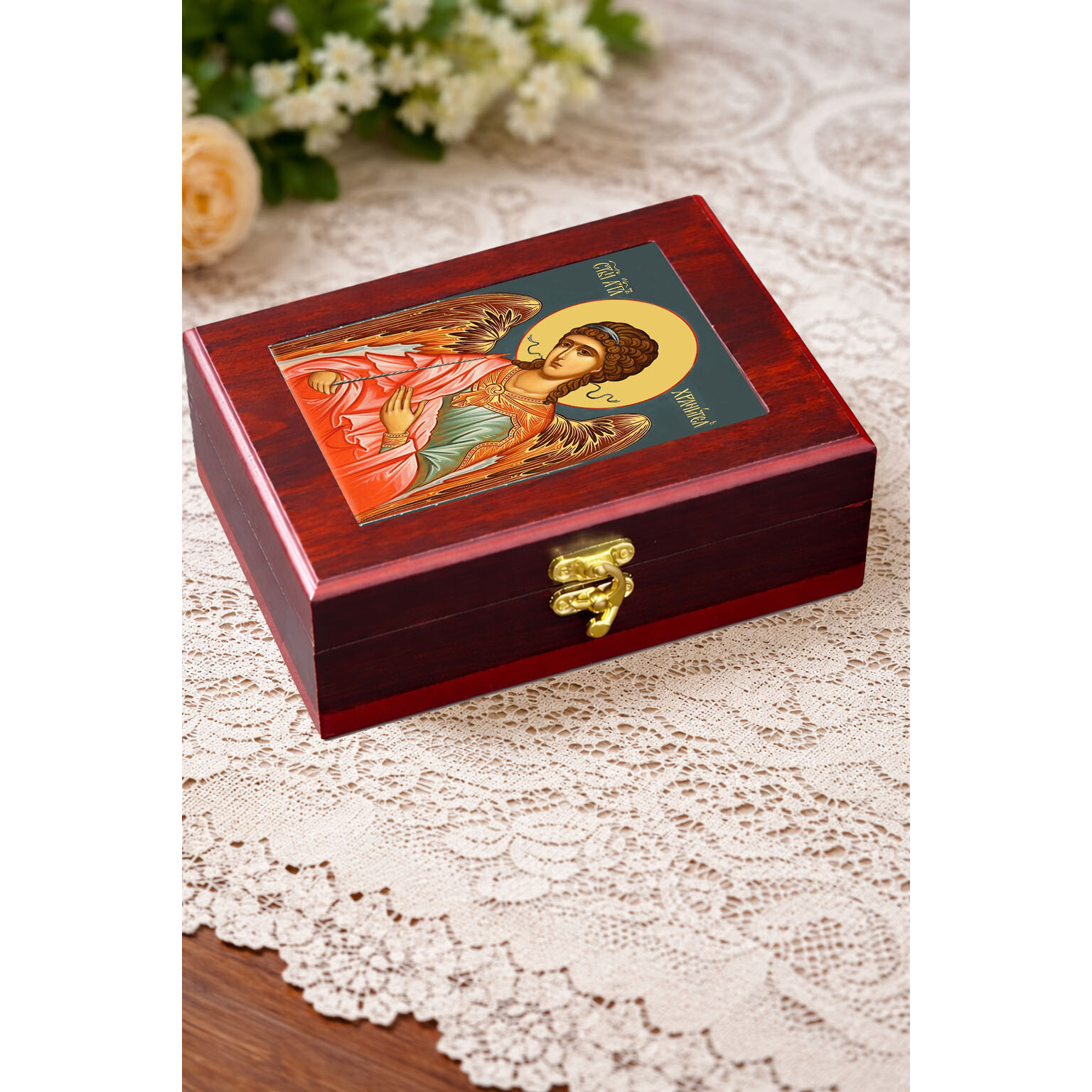 Uses - This Sacred keepsake box can be used as a table box or as a framed wall hanging Icon box