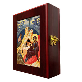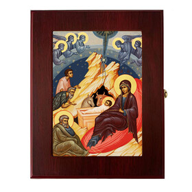 Wall Hanging framed wooden Icon Box Featuring Nativity of Christ Icon and Angels
