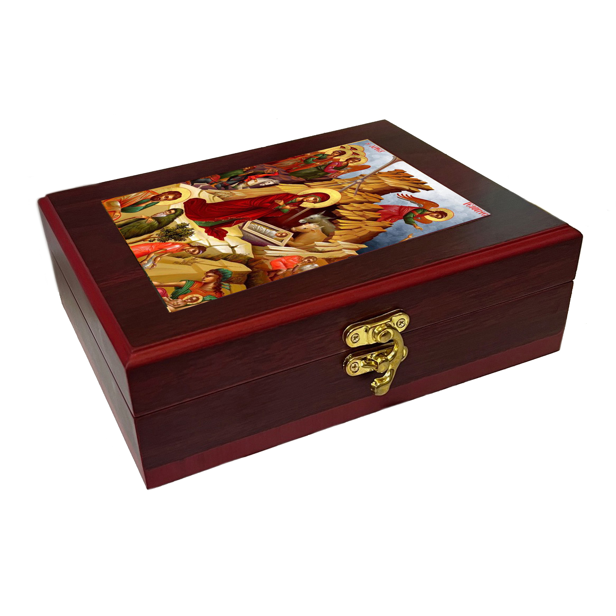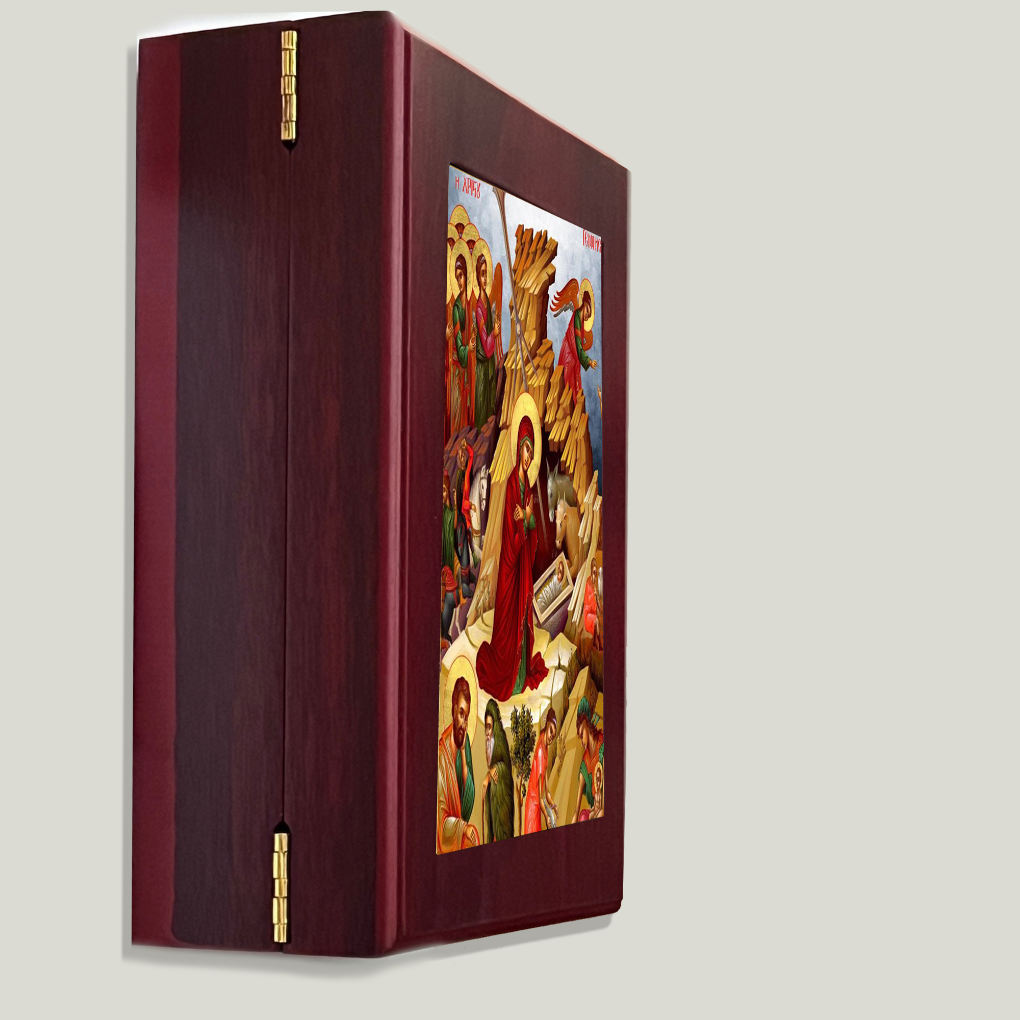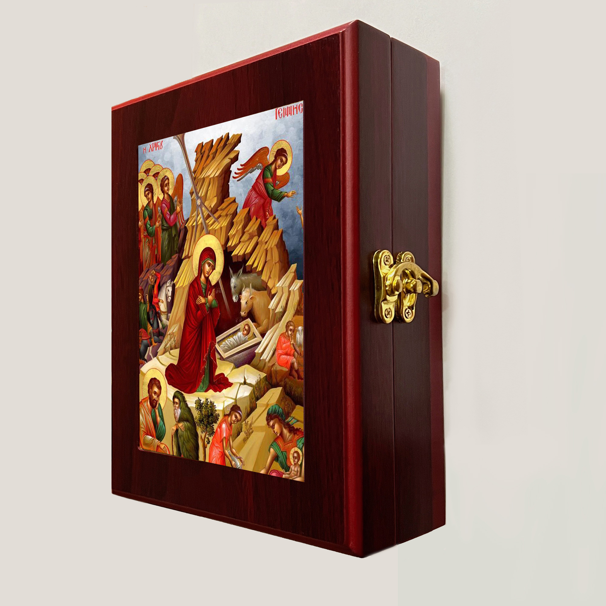 Wall Hanging Framed wooden Icon Box Featuring byzantine Icon of Nativity