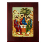 HB21 Holy Trinity - Old Testament Trinity Orthodox Icon Image Set in Wall Hanging Framed Box - For Rosary, Prayer Ropes, Beads, Jewelry Prayer Cards Anything Sacred - Catholic Orthodox Icon 7 1/2 Inch