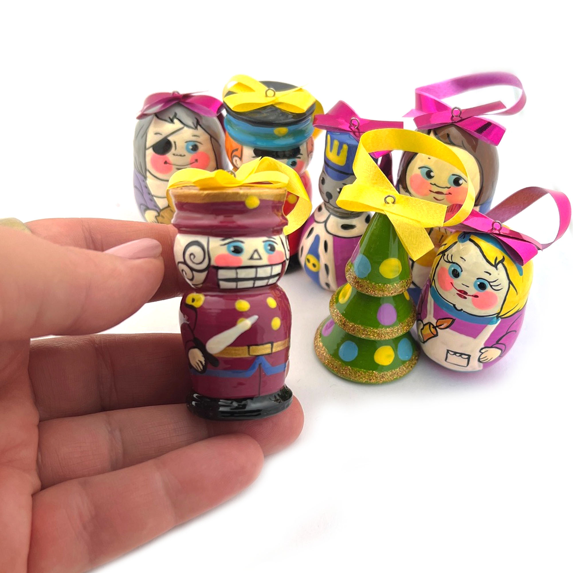 Beautiful hand carved and hand painted Christmas ornaments - set of 7 pcs