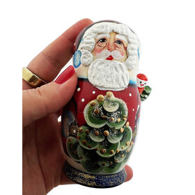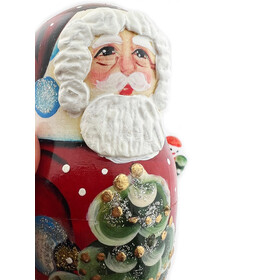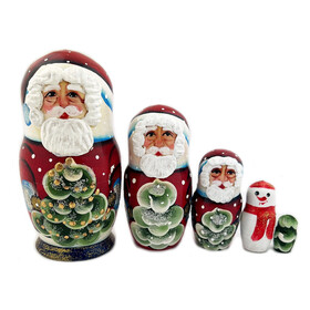 M280 Santa Claus Nesting Dolls With Papier Mache 3D Beard - With Snowman and Mini Tree - 4 1/4 Inch Tall, 5 Nesting Dolls