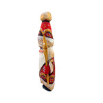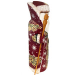 700-25-11 Russian Hand Made Wooden Santa Claus Figurine Hand Painted Red, Santa Holding Bag of Goodies and a Stick 6 1/4 Inch x 2 1/2 in Tall