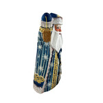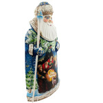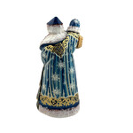 700-42-1 Russian Hand Made Wooden Santa Claus Figurine Hand Painted Blue, Santa Holding Lantern and Tree 6 1/2 inch tall
