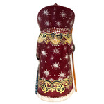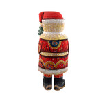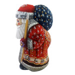 700-60-6 Russian Santa Claus Figurine Holding Bag of Goodies Wooden Hand Painted Carved Father Frost Christmas Decoration 7 3/4 Inch x 3 3/4 inch wide, Red