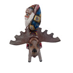 700-75-3 Santa Claus Riding Elk - Russian Hand Carved Hand Painted Santa Claus Russian Father Frost Figurine 7 Inch Tall