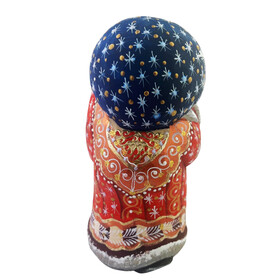 700-40-21 Santa Figurine With Gift Bag And Holiday Gifts - Russian Hand Carved Hand Painted Wooden Santa Claus 5 1/2 inch