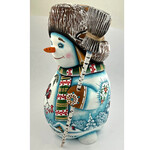 700-80-SN Handmade Snowman Figurine Hand Carved Russian 7 1/4"x 3 1/4"