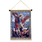 TH-2 Saint Michael Archangel Hanging Tapestry Icon, 14 Inch Tall Including Hanger Part