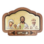 U606 Christ The Teacher - Virgin of Kazan - Saint Nicholas - Incense Crystals Car Wooden Icon - Wood Laser Cut Frame - Sticker on The Back - Wooden Covered With