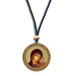 CA15 Virgin of Kazan and Christ - Gold Foil Icons - Reversible Car Room Icon Ornament Pendant 2 Sided - 2 Inch Diam on Rope For Hanging
