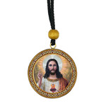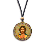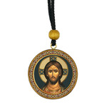 U495 Christ The Teacher - Ornament Icon, Car Room Icon Pendant 2 1/2 Inch Diam - On Rope total length 7 1/4 Inch, Made in Ukraine