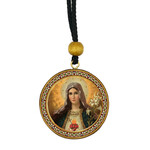 CA8 Sacred Hearts of Mary & Jesus - Gold Foil Icons - Reversible Car Room Icon Ornament Pendant 2 Sided - 2 Inch Diam on Rope For Hanging