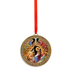 CA20 Holy Family - Christ Blessings 2 Sided Christmas Ornament Tree Pendant - Orthodox Catholic - Reversible - 2 Inch Diam on Red Ribbon