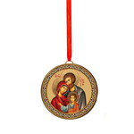 U553 Holy Family Byzantine Orthodox Icon Pendant - Uses for Car Room and as Christmas Tree Ornament 2 1/2 Inch Diam - On Rope total length 7 1/4 Inch