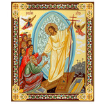 JC172-S Resurrection Icon Wooden Icon 3 Inch - Gold Foil -Gold foil Cross on the Back Side