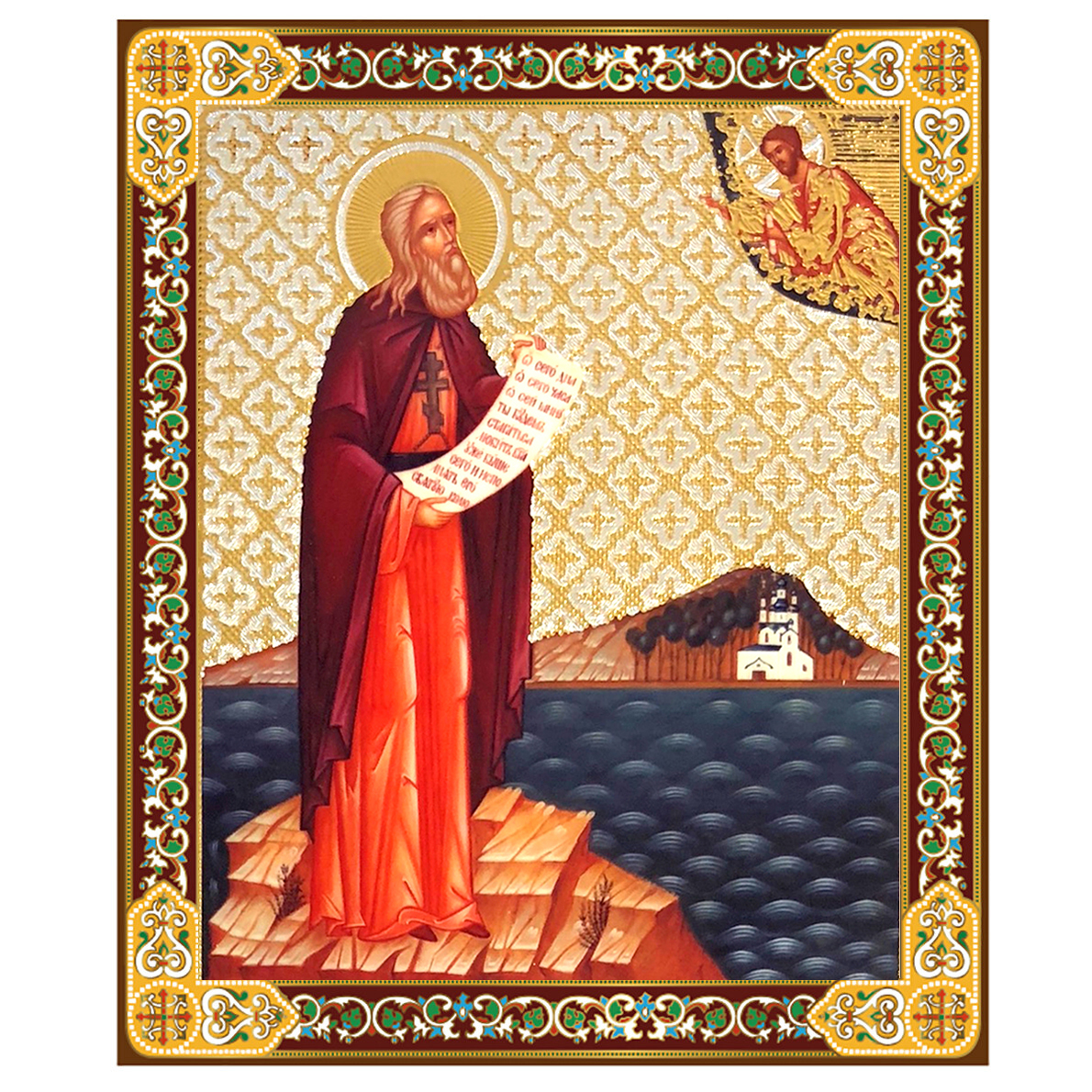 JC148-S ST HERMAN OF ALASKA Gold Foil - Wooden Icon 3 inch, Gold foil Cross on the Back Side