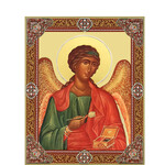 JC158-M ARCHANGEL Gabriel Gold Foil Wooden Icon 4 3/4 inch, With Hook For Hanging on Wall and Stand for Standing
