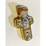 EC-120 Icon Cross Crucifix & Presentation of Mary in Temple Two Sided Reversible Sterling Silver 925 22kt Gold Gilded Icon Cross 1 1/4"x 3/4"