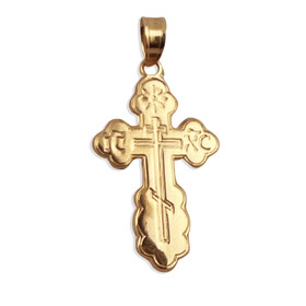 The top has an 8 point star representing the eternal virginity of Theotokos, IC XC on each arm are the first Greek letters for Jesus Christ. Insert is a three barred Russian Cross.