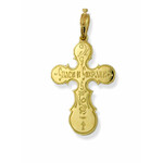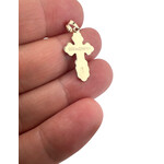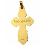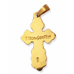 541W 14KT Gold Three Barred Cross Size without bail 7/8" with bail 1"x1/2" on the back side "Save us" in Slavonic