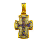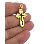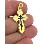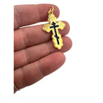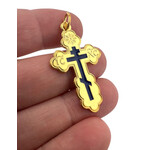GP641-ECW-CP-24 Sterling Silver 24kt Gold Plated St Olga Three Barred Cross With blue Enamel - Stamped 925 Silver