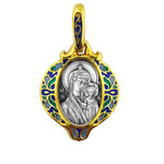 EC-203 Virgin of Kazan Icon Pendant on the Back Side Saint Igor - Silver 925 - 24KT Gold Plated - Hand Enameled 1 1/16 Inch