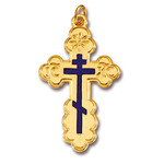 GP641-ECW-CP-24 Sterling Silver 24kt Gold Plated St Olga Three Barred Cross With blue Enamel - Stamped 925 Silver