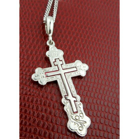 3-SR-CP-29 Sterling Silver Cross "SAVE US" Silver 935 Three Barred 1 7/8"x1" With Tapestry Pouch