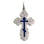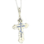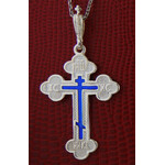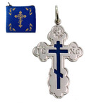 S641ECWRH Saint Olga Sterling Cross Three Barred Russian Orthodox With Blue Enamel 1 1/4"- Stamped 925 Sterling Silver