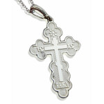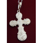 1S-CP-24 Orthodox Christian Large Sterling Silver Cross Engraved Three Barred 2 1/4"x1 1/8"-Comes in a pouch