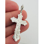 AD-20 Large Silver 935 Russian Crucifix Cross Three Bar Holy Spirit On The Back Side "Save Us" 2 1/4"x1"