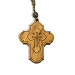 U414 Three Bar Cross Pendant Small Wooden Icon Cross Crucifix of Rope Save Us on the Back For Car Room, 4 Inch, Comes with Gold String for Hanging