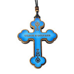U569 Christ Blessings Wooden Icon Cross Pendant on Rope for Car - Room or as Christmas Tree Ornament 2 3/4"