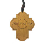 U609 Wooden Cross Crucifixion on Rope Car Cross Pendant - On The Back - SAVE US - In Slavonic- Made in Ukraine