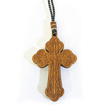 U571 Eternal Bloom Wooden Icon Cross Pendant on Rope for Car - Room or as Christmas Tree Ornament 2 3/4"