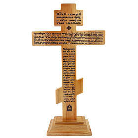 Standing Three Bar Orthodox Cross - Wooden Byzantine Crucifix with Prayer
