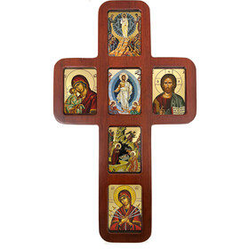 - Dimensions: Measuring 14 inches tall and 8 1/4 inches wide, with a thickness of 1/2 inch, this icon cross makes a striking statement. The icons inside the cross measure 2 3/4 inches tall by 2 inches wide.