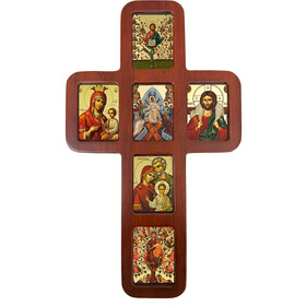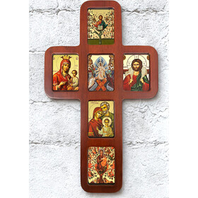 - Dimensions: Measuring 14 inches tall and 8 1/4 inches wide, with a thickness of 1/2 inch, this icon cross makes a striking statement. The icons inside the cross measure 2 3/4 inches tall by 2 inches wide.
