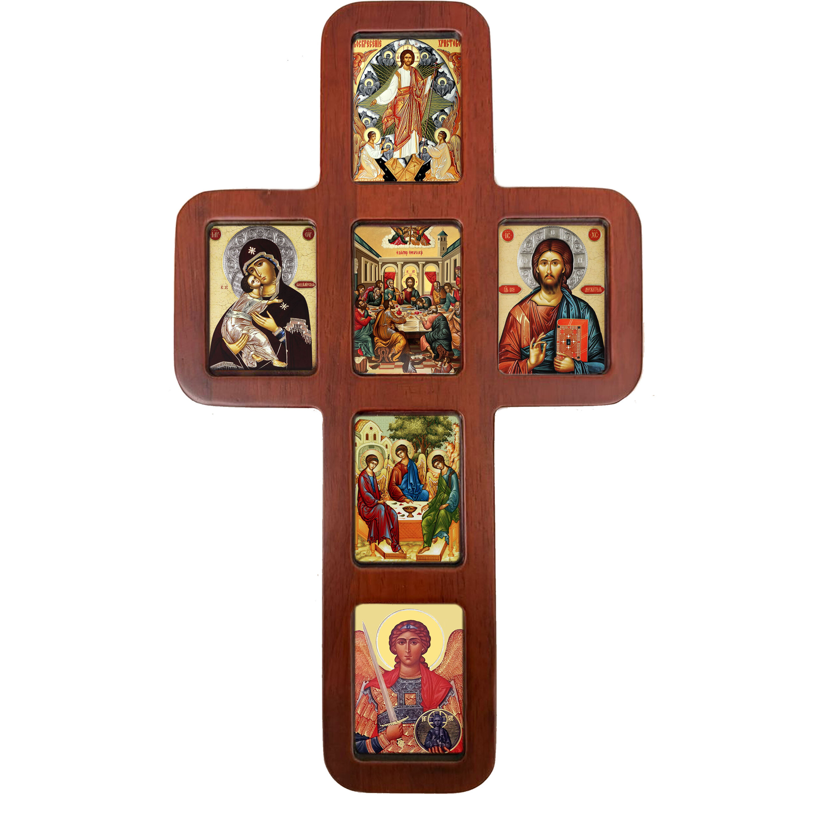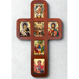 - Dimensions: Measuring 14 inches tall and 8 1/4 inches wide, with a thickness of 1/2 inch, this icon cross makes a striking statement in any setting. The icons within the cross measure 2 3/4 inches tall by 2 inches wide.