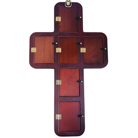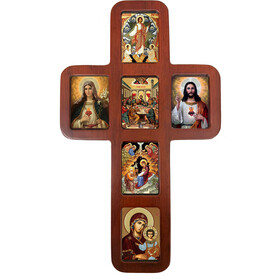 - Dimensions: Measuring 14 inches tall and 8 1/4 inches wide, with a thickness of 1/2 inch, this icon cross makes a striking statement in any setting. The icons within the cross measure 2 3/4 inches tall by 2 inches wide.