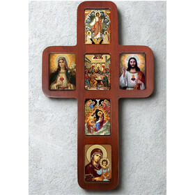 Enhance your spiritual space with this stunning Wooden Icon Cross, meticulously crafted from high-quality oak wood. This exquisite wall hanging showcases a variety of icons that embody the essence of Christian faith.