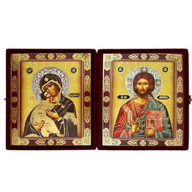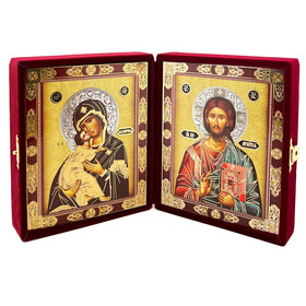 DIP-6-M Virgin of Vladimir and Christ The Teacher Diptych in Velvet Case 5" - Gold Foil Icons - Set in a Beautiful Faux Velvet Case