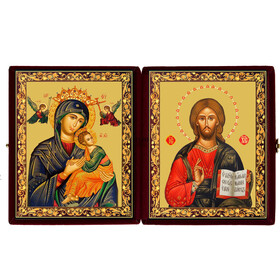 DIP-10-S Perpetual Help and Christ The Teacher Diptych in Velvet Case 3 1/4" - Gold Foil Icons